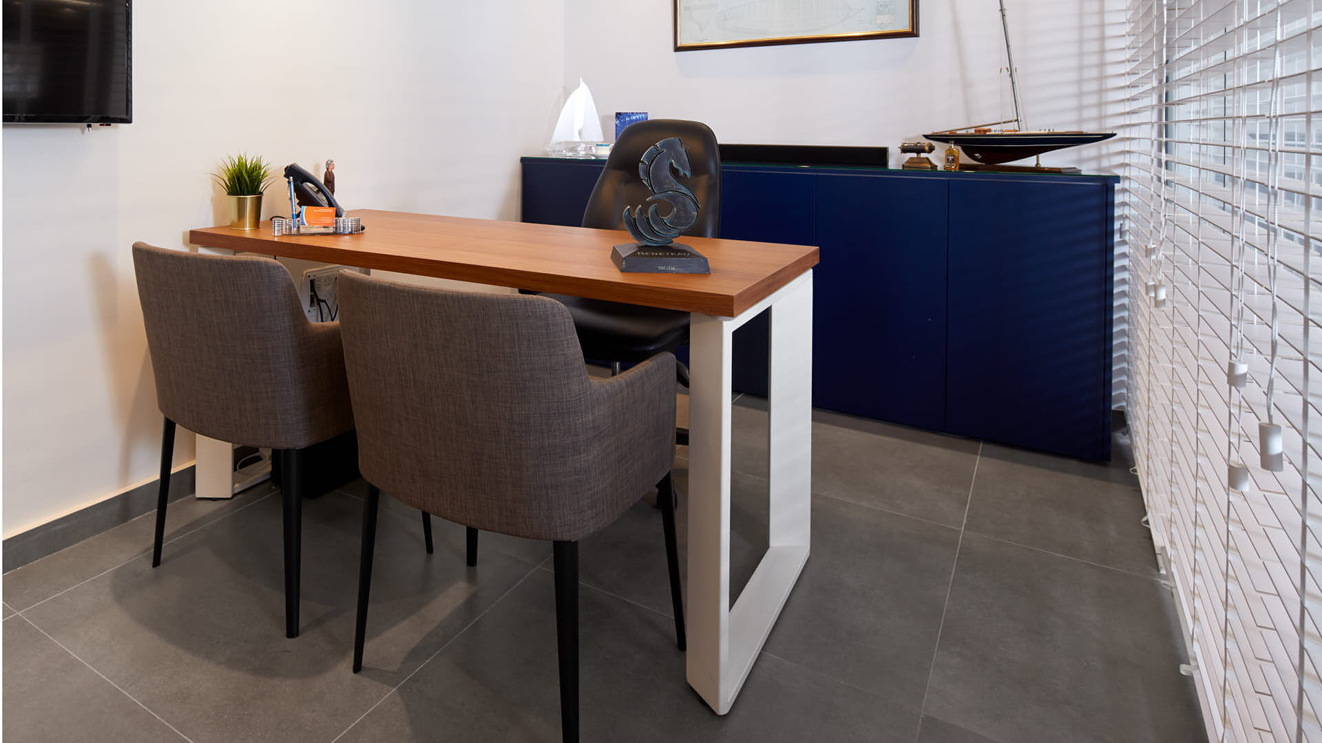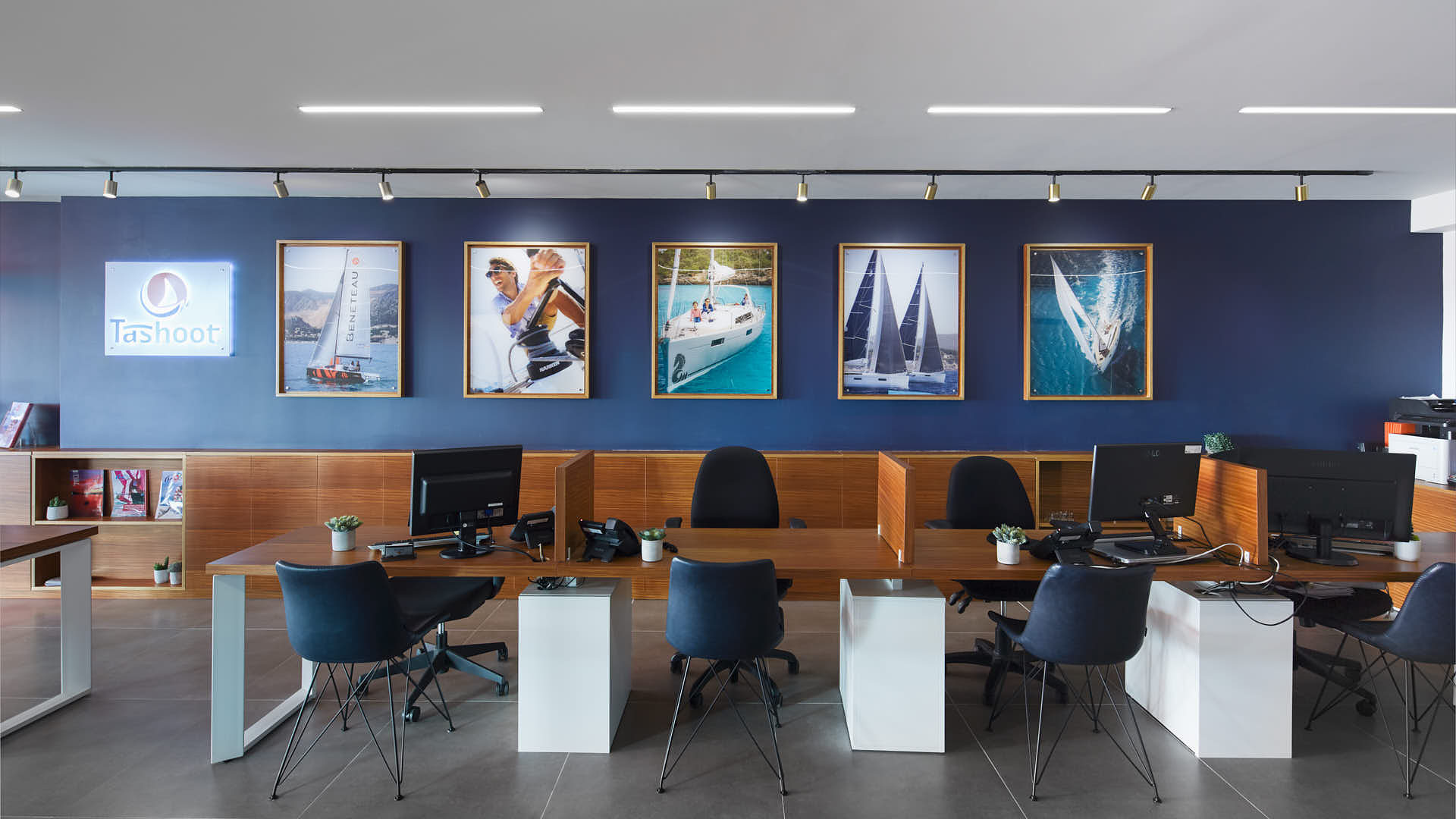 פרויקט עיצוב פנים זה כלל את שיפוץ משרדיה המחודשים של חברת תשוט, המתמחה במכירה והשכרה של יאכטות בארץ ובעולם. המשרד, המשתרע על שטח של 124 מ"ר במרינה הרצליה, תוכנן כדי לשדר עיצוב נקי, מודרני ויוקרתי, תוך שימת דגש על יצירת סביבה עבודה פרקטית ומזמינה.