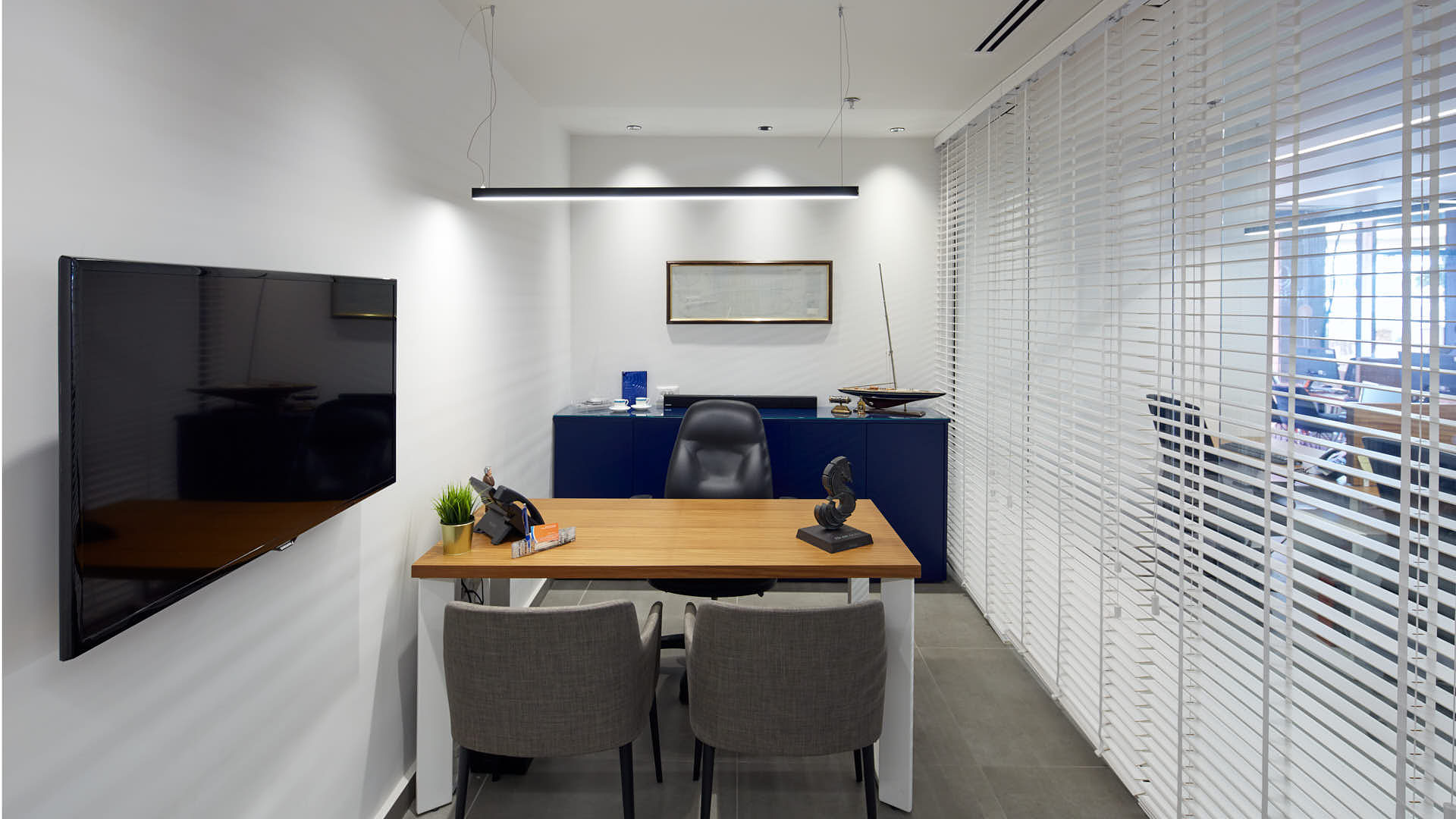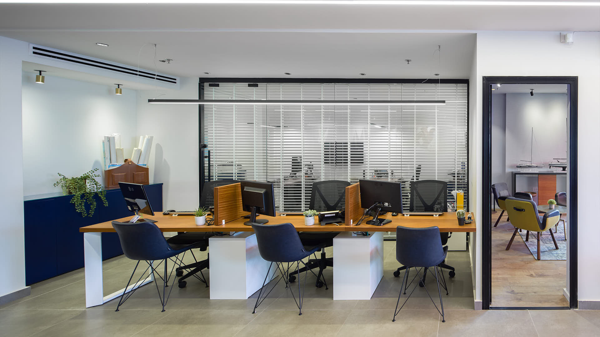 במהלך התכנון, יצרנו חלל עבודה פונקציונלי המורכב מחדר מנכ"ל, חדר מכירות, חדר מנהלת חשבונות, עמדות עבודה בחלל פתוח, כיתת לימוד, ומטבחון. המשרד כולל גם מרפסת ירוקה המציעה נוף מרהיב לים, שתורמת לתחושת רווחה ויוקרה.