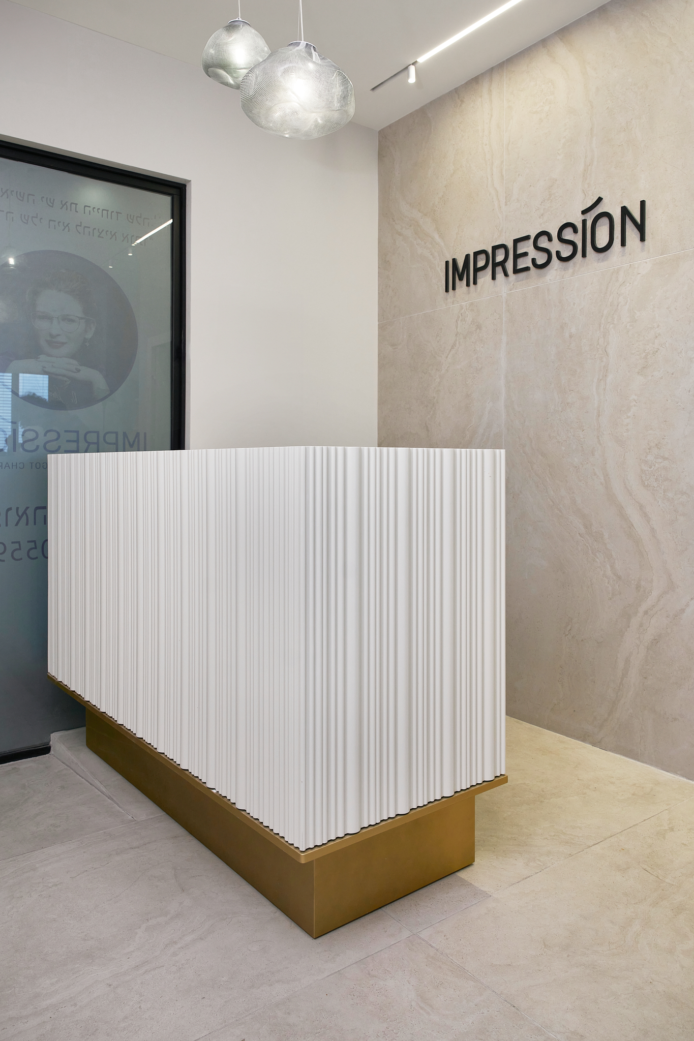 החלל, בעל צורת מלבן עם צלעות אלכסוניות, עוצב בקווים ישרים ובמראה נקי ומינימליסטי ליצירת אווירה רגועה. הקירות עוטפו בטפט בד בטקסטורה עדינה, אשר תרם לאווירה הנינוחה. הרצפה והקיר שמאחורי דלפק הקבלה חופו באריחי גרניט פורצלן דמוי אבן, אשר הדגישו את האזור ויצרו קונטרסט מעניין עם הקווים הנקיים של החלל.