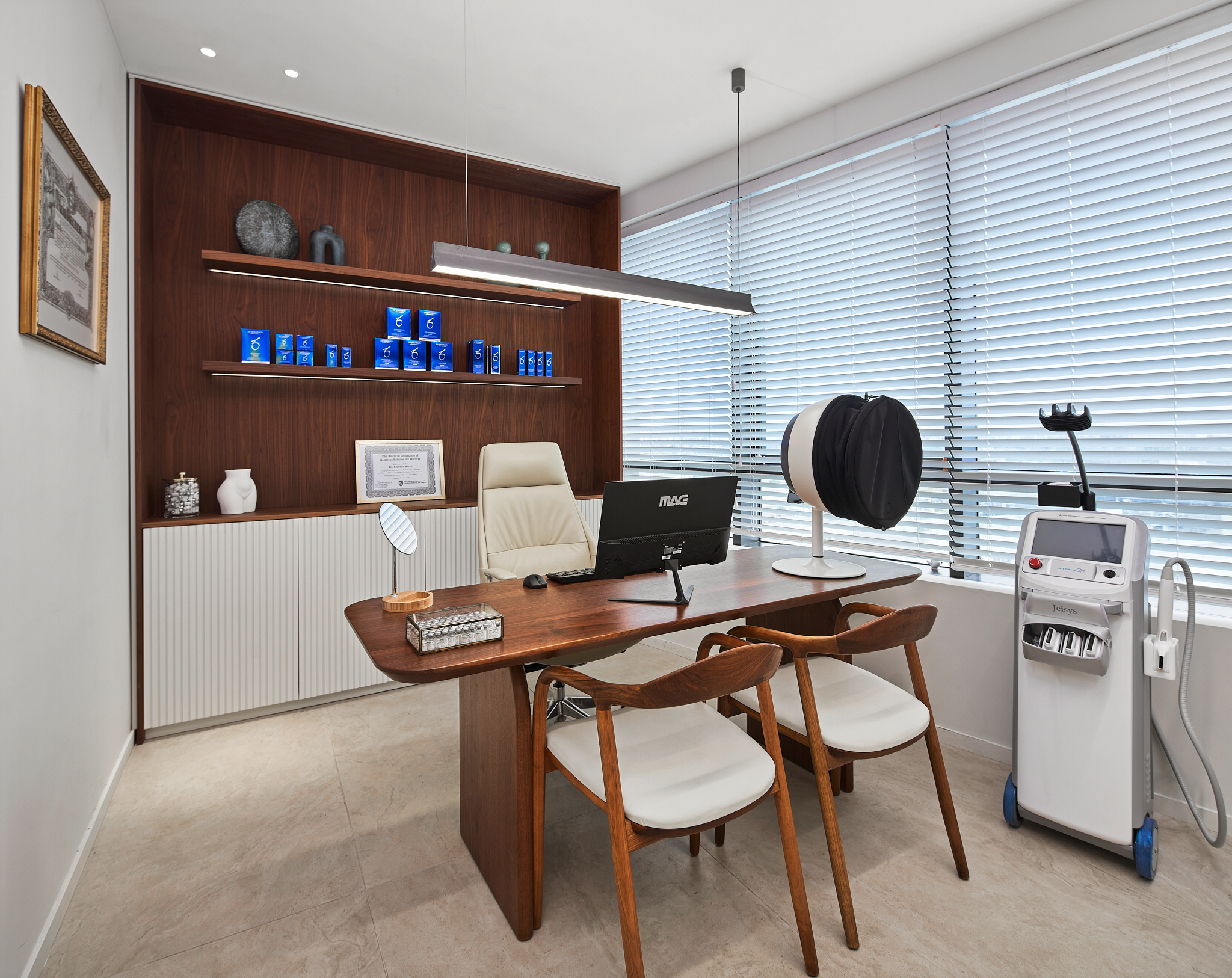 העיצוב כלל גם פתרונות אחסון חכמים ופרקטיות גבוהה, בכדי לשמור על סדר וניקיון בכל החללים. בנוסף, הוקמה פינה להנחת מוצרים, המאפשרת ללקוחות לקבל מידע נוסף על השירותים והמוצרים שמוצעים בקליניקה.